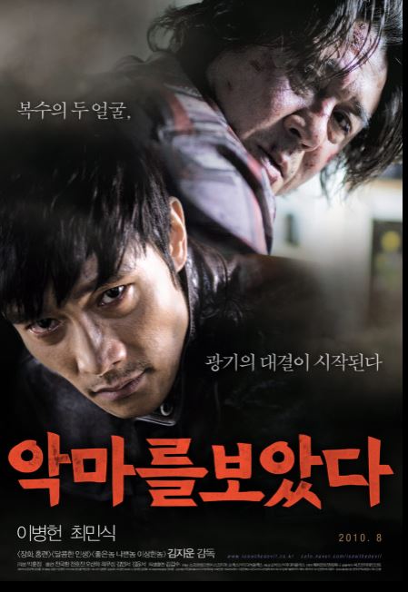 2010년 무더위가 한창이던 8월 12일에 2시간 24분의 상영시간으로 두 남자의 사투를 그린 악마를 보았다는 그동안 한국 영화에 없었던 하드코어 슬래셔물로 얼마나 잔인한 묘사가 많았던지 두 번이나 제한상영가 등급을 받아 개봉에 어려움이 있었지만 극심한 장면들을 수정하여 청소년 관람불가 등급으로 개봉했습니다. 배우 최민식은 각본으로 나온 아열대의 밤을 재미있게 읽고 이것을 영화로 만들 사람은 김지운 감독밖에 없다고 생각하여 미국에 있던 감독에게 직접 찾아가 각본을 보여줬다고 합니다. 악마를 보았다의 출연진으로는 이병헌, 최민식, 전국환, 오산하, 최무성, 김인서, 김윤서, 김갑수, 이준혁, 조덕제, 한철우, 엄태구, 최진호, 김강일, 윤병희, 박로사, 이혜아, 이설구, 정미남, 신신범, 윤채영 등이 출연하여 명연기를 펼쳤습니다. 이 영화는 연쇄살인도 모자라 시신을 토막 내어 유기하는 악마 같은 살인마 장경철(최민식)에게 임신한 약혼녀를 잃은 짐승 같은 남자 김수현(이병헌)이 장경철에게 복수하는 내용입니다. 그를 한 번에 죽이지 않고 만날 때마다 불구로 만들고 살려주고를 반복하며 잔인한 복수를 하고 흥미를 불러일으키는 적수를 만나 흥분한 살인마의 반격으로 둘의 광기가 충돌합니다.