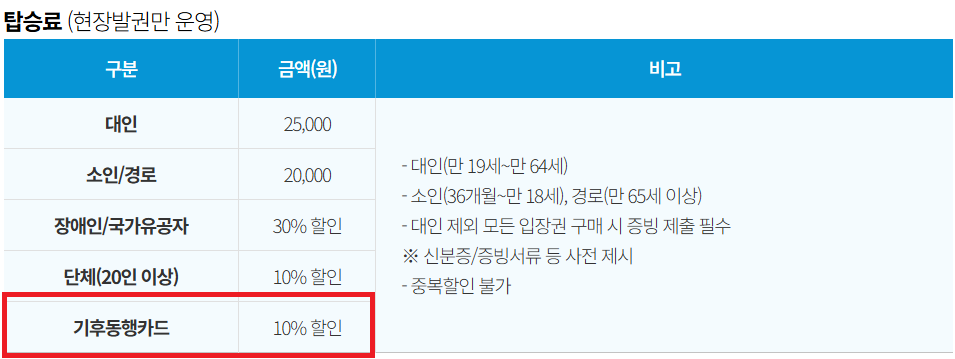 서울달 탑승은 현장에서만 구매 가능하며 탑승료는 대인(만 19~64세) 2만 5천원, 소인(36개월~만 18세) 2만원입니다. 기후동행카드로 예매할 시 10% 할인이 가능하기 때문에 기후동행카드 신청이 필요한 분들이라면 아래 링크를 통해 지금 즉시 카드 발급을 시작해 보시기 바랍니다.
