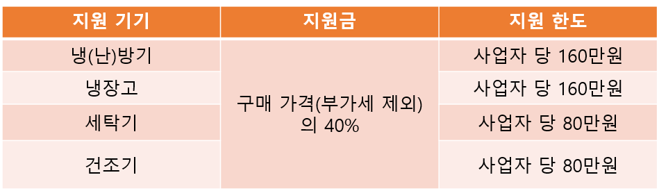 소상공인 고효율 기기 지원금은 지원 기기 구매가격의 최대 40%까지 가능하며 사업자 당 최대 480만원의 지원금 수령이 가능합니다.